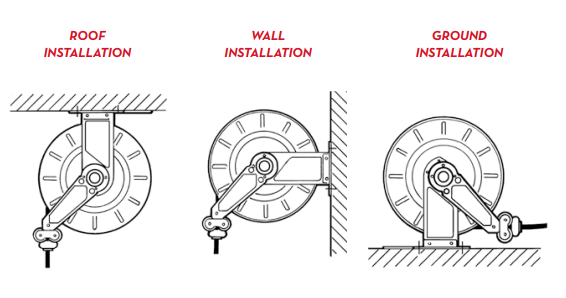 Different ways to install PIUSI’s hose reels: they can be easily placed wherever you need them without any problem about functionality and safety. PIUSI’s products are without a doubt designed to support your work in any condition.