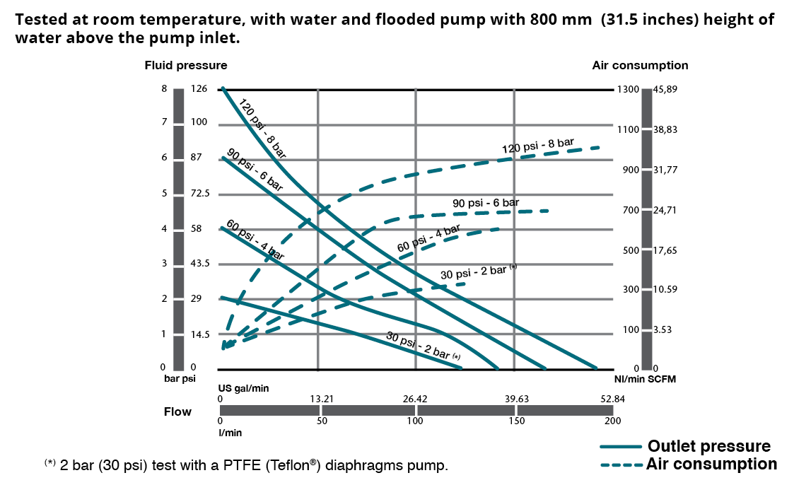 | Maximum free flow delivery | 200 l/min (53 gal/min) |