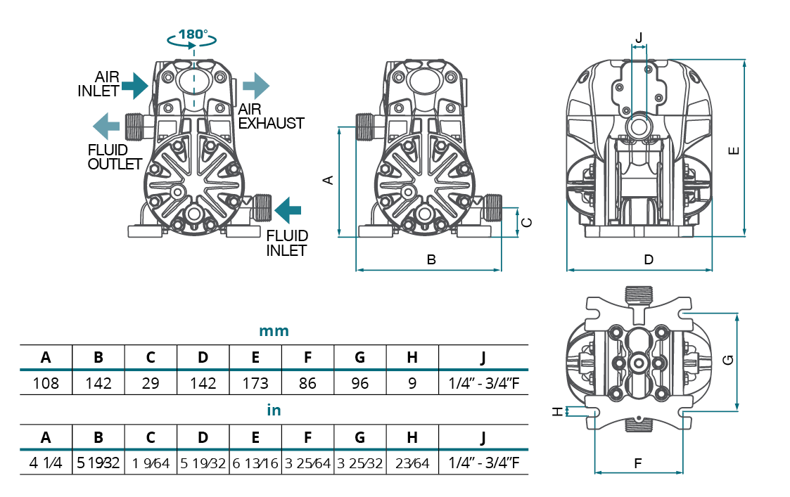Double diaphragm air-operated pumps for transporting and dosing a range of fluids. For OEM applications and slower-flowing industrial operations. Lower start-up pressure is needed for unbalanced spool valve air motors so that finer flow adjustments can be made using regulating air pressure. Pump wetted materials are suited for usage in corrosive situations and are compatible with the most demanding fluids. Polypropylene is used to construct the air motor's directional air valve and air chamber covers.