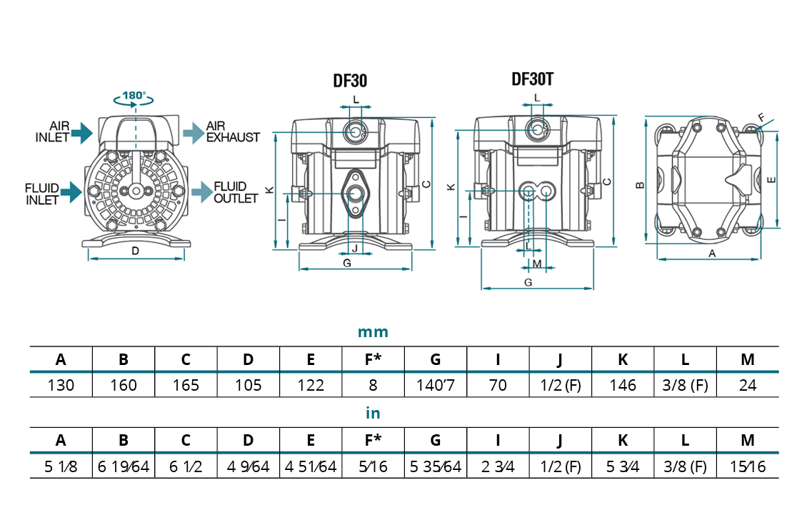 | DF30PPSESTMBAS | Santoprene | PTFE | Stainless steel (AISI 316) | Stainless steel | Polypropylene | Polypropylene |